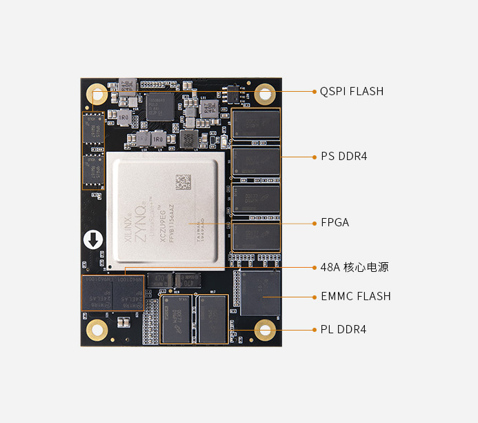 4x ARM Cortex-A53,1.333GHz;双核 Cortex™-R5,533MHz;PS 端 4GB DDR4,64bit,数据速率 2400Mbps;PL 端 2GB DDR4,32bit,数据速率 2400Mbps