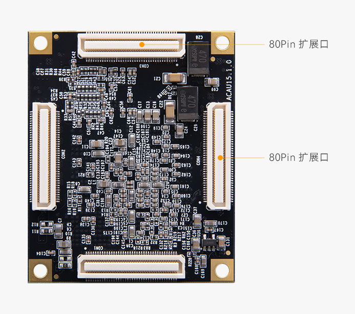 80 Pin 扩展口 | 4 个高速扩展口,使用 4 个 80Pin 的板间连接器和底板连接, FPGA 的 IO 口通过差分走线方式连接到这 4 个扩展口上 |