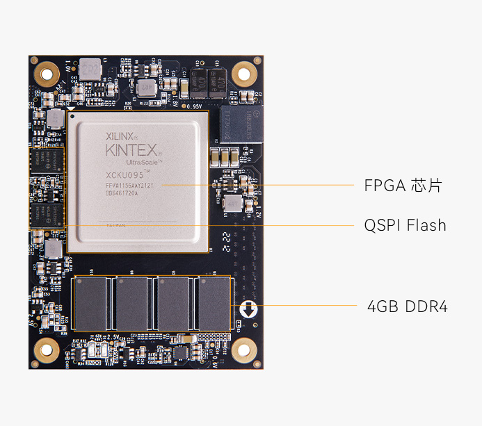 XCKU095 芯片拥有高速逻辑处理能力、大容量存储、高性能 DSP 处 理单元、高速串行收发器、灵活的 I/O 接口和强大的 PCIe 支持等优势