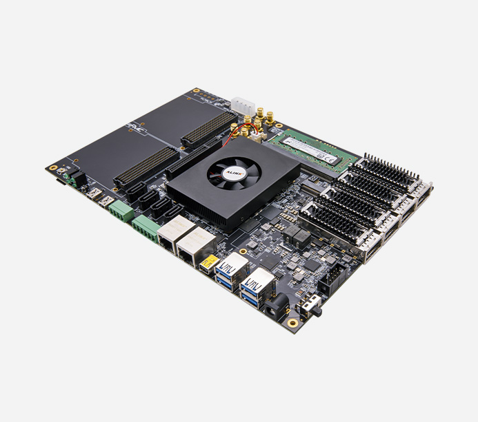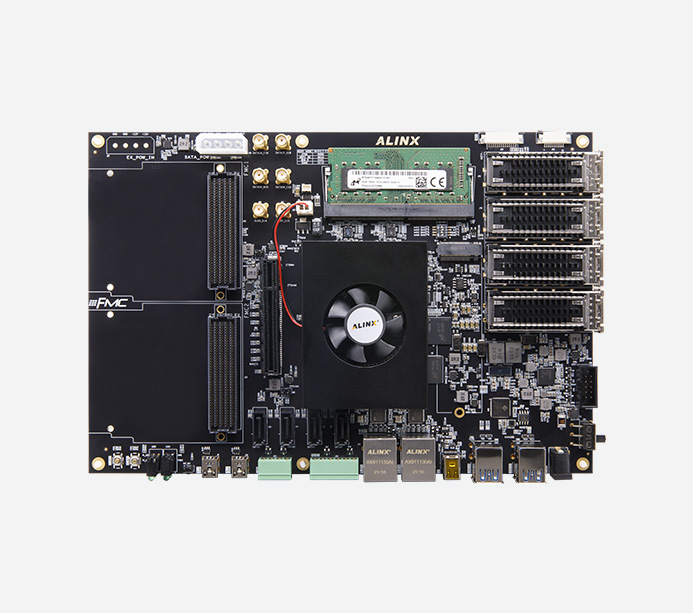 丰富的外围接口:2 个 FMC HPC 接口、4 路 M.2 SSD 接口、1 路 PCIE 主模式插槽、4 路 SATA 接口、3 对差分 SMA 接口、1 路 DP 接口、4 路 100G 光纤接口、4 个 USB3.0 接口、2 路千兆以太网接口、3 路 UART接口、1 路 TF 卡槽、2 路 CAN 总线接口、2 路 RS485 接口和 1 路 MIPI 摄像头接口