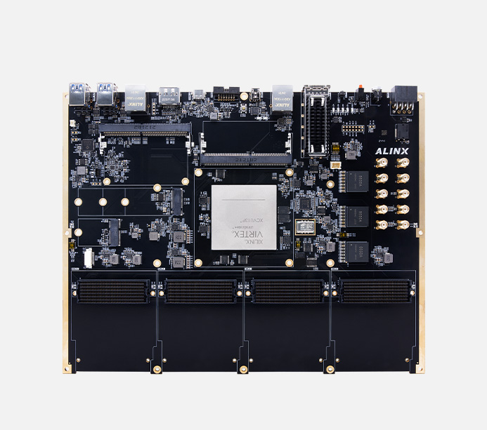 AXVU13F 带有 4 路 FMC+ 扩展口,提供了 384 个 I/O 数量和 68 对 28.21G 的高速 GTY 收发器,可以外接 ALINX 的各种 FMC+ 和 FMC 模块(HDMI 输入输出模块,双目摄像头模块,高速 AD 模块等)