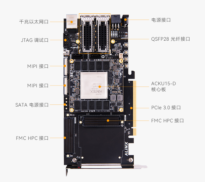 AXKU15-D:Xilinx Kintex UltraScale+ XCKU15P FPGA 开发板 60G光纤 PCIe3.0 GTY