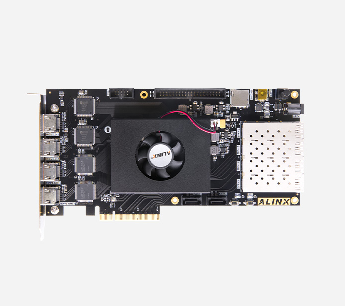 采用核心板加扩展板的模式,方便用户对核心板的二次开发利用。 丰富的外围接口,1 路 PCIe x4 接口,4 路 SFP 光纤网络接口,2 路 HDMI 输出接口,支持 4k 30 帧输出,2 路 HDMI 输入接口, 支持 4k@30 帧输入,Uart 接口,SD 卡接口等。满足用户各种 PCIe 高速数据传输,视频图像处理和工业控制的要求。为高速视频传输, 高速光纤通信和 PCIe 数据处理的前期验证和后期应用。
