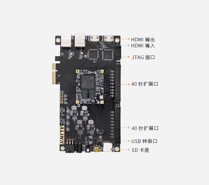 采用核心板加扩展板的模式,方便用户对核心板的二次开发利用。丰富的外围接口,比如1 路 PCIe x4 接口,2 路千兆以太网接口,1 路 HDMI 输出接口,1 路 HDMI 输入接口,Uart 接口,SD 卡接口等。