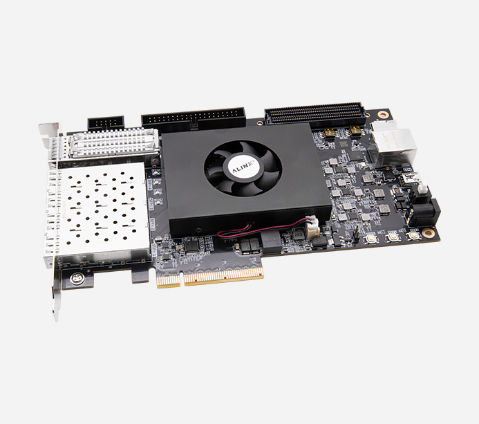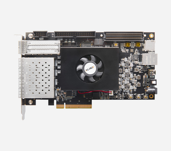 丰富的外围接口:1 个 PCIe2.0 x8 接口、4 路 10G SFP 光纤接口、1 路 40G QSPF+光纤接口、1 路千兆网口、1 路 UART 串口接口、1 路 SD 卡接口、1 个 FMC 扩展接口、1 个 40 针的扩展口等。支持高速数据传输和交换,数据存储,视频传输处理以及工业控制的要求、项目研发前期验证
